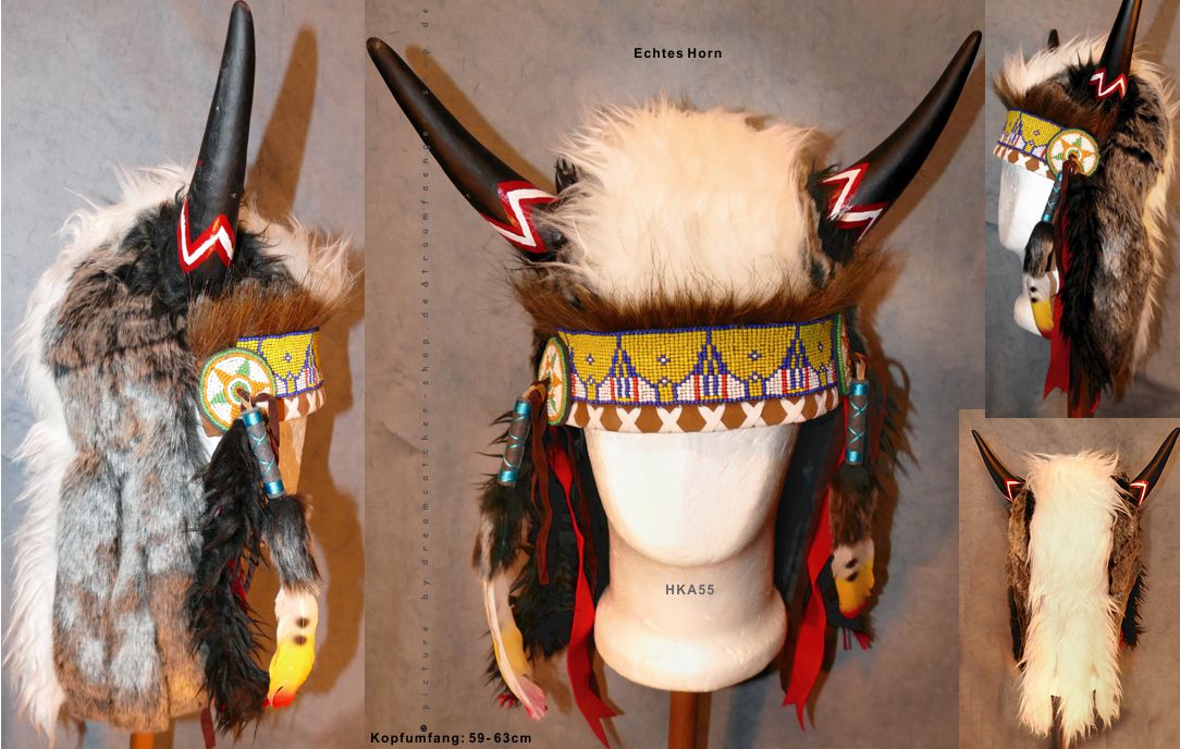 Fellkappe aus Webpelz weiss und grau.2 echte Hörner (Rind) bemalt. Seitlich mit 2... mehr