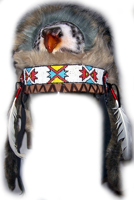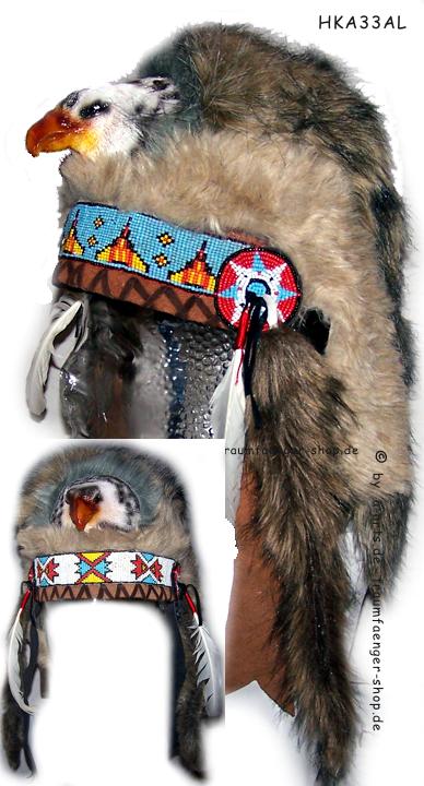 "Adler-Kopf Fellkappe verziert, Schamanen Kopfbedeckung"