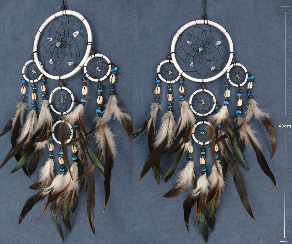 Traumfänger mit Bergkristall,Kaurimuscheln,Magnesit
